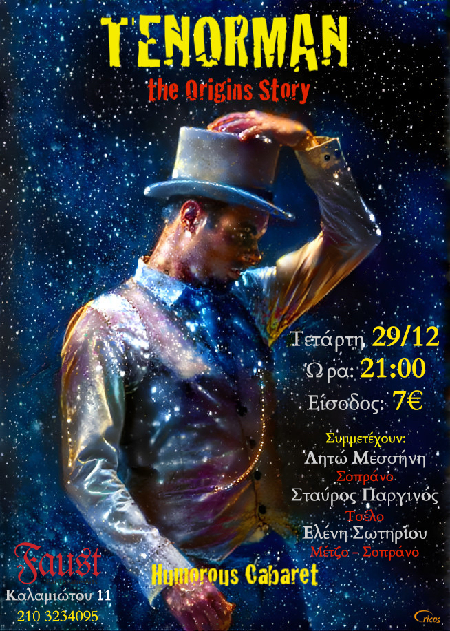 ΤΕΤΑΡΤΗ 29 ΔΕΚΕΜΒΡΙΟΥ TENORMAN “the Origins Story” Humorous Cabaret |